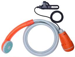 La ducha, compramos un pequeña bomba recargable que se introduce en un balde con agua que la bomba succiona y sale por el otro extremo. ¿Recuerdan que todo debía tener doble uso? Pues el balde que usamos de inodoro servía para esto, y asegurarnos de que siempre estuviera limpio con el uso del sistema de la doble bolsa.